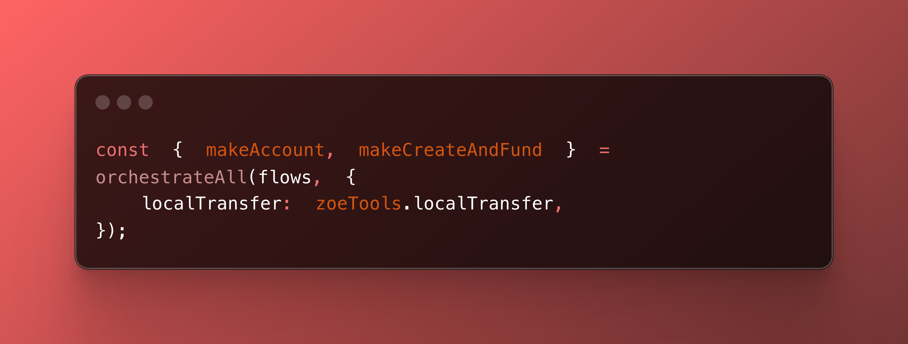 const { makeAccount, makeCreateAndFund } = orchestrateAll(flows, {