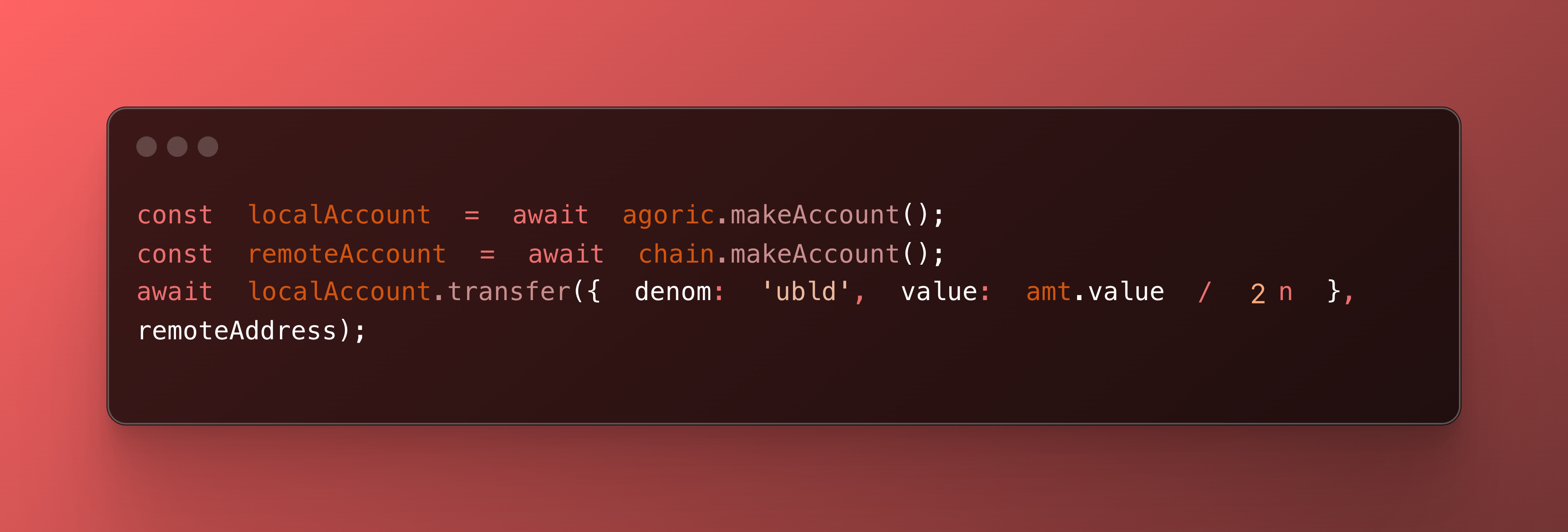 await localAccount.transfer({ denom: 'ubld', value: amt.value / 2n }, remoteAddress);